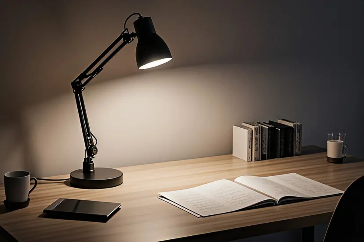 - Для работы с документами или чтения книг требуется наиболее высокий уровень освещенности — источник света должен быть достаточно мощным, чтобы равномерно осветить всю поверхность стола без резких теней и перепадов.